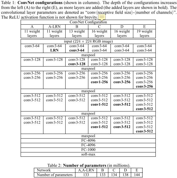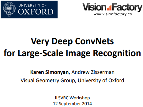 Simonyan, Karen, and Andrew Zisserman. "Very deep convolutional networks for large-scale image recognition." arXiv preprint arXiv:1409.1556 (2014).