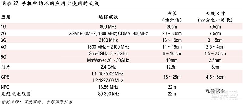 而且上文提到,除了通讯功能之外,手机的Wi-Fi、蓝牙、GPS、NFC、无线充电等功能都需要用到不同的天线。