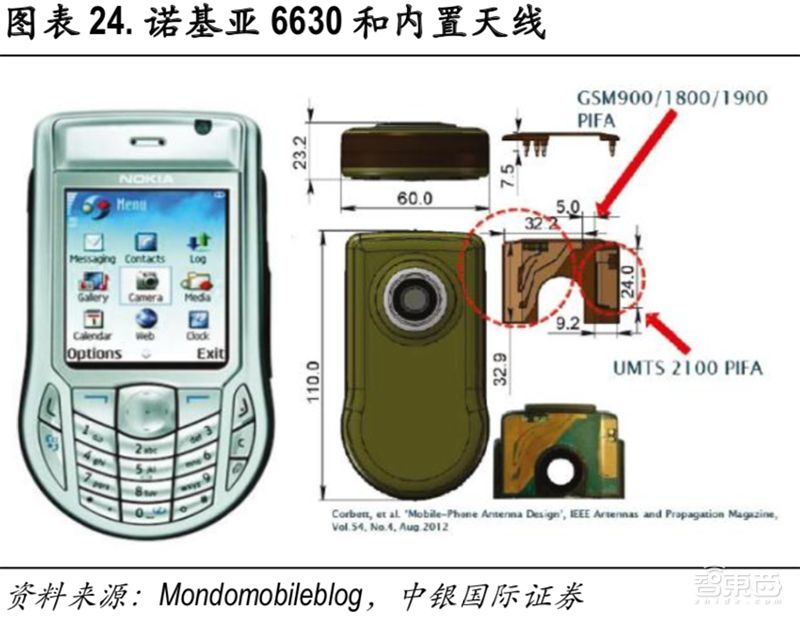 2004年推出的3G Nokia 6630手机,可以真正意义上支持全球漫游,是第一个双模三频段手机,所使用的天线也是多天线内置。