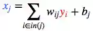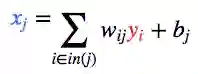 现在,我们更新第一个隐藏层。我们取上一层节点的输出 y,并使用权重来计算下一层节点的输入 x。