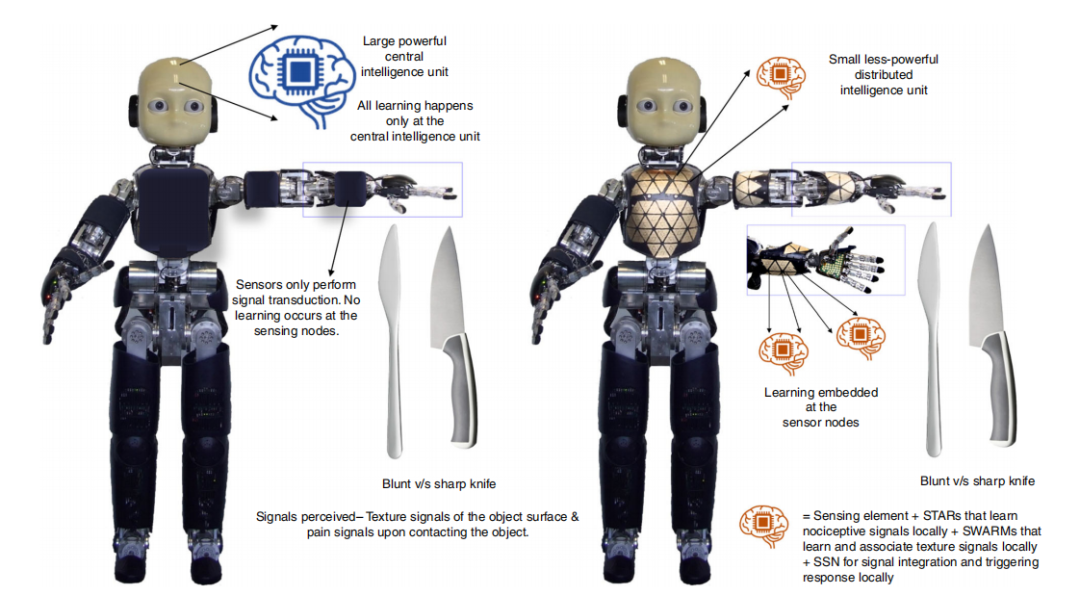 而新的方法将 AI 嵌入到传感器节点网络中,从而教会机器人如何识别疼痛并对破坏性的刺激作出反应。