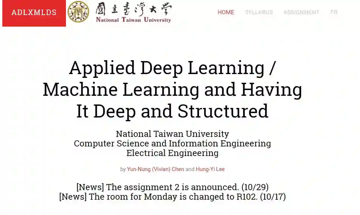 课程地址:https://www.csie.ntu.edu.tw/~yvchen/f106-adl/syllabus.html