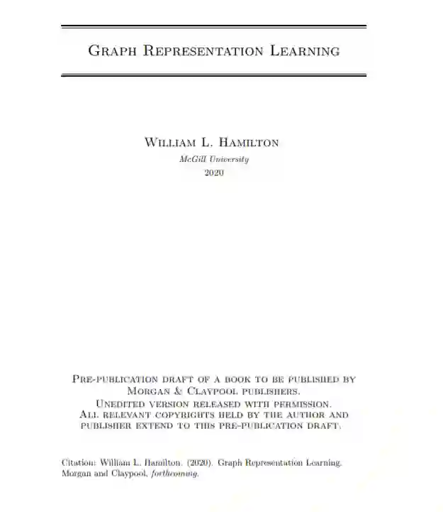 这本书是我对图表示学习的一个简要而全面的介绍,包括嵌入图数据的方法,图神经网络,以及图的深度生成模型。