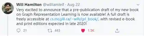 总的来说,研究兴趣集中在机器学习、网络科学和自然语言处理的交叉领域,目前重点关注快速增长的图表示学习和图神经网络。