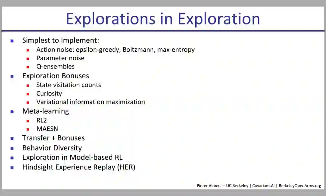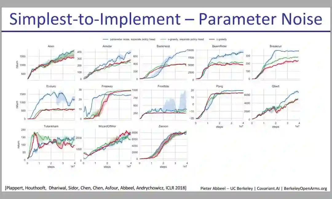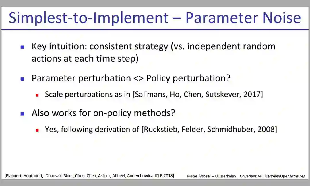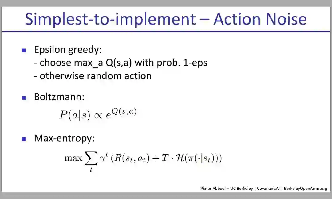 · Action noise: epsilon-greedy, Boltzmann, max-entropy
