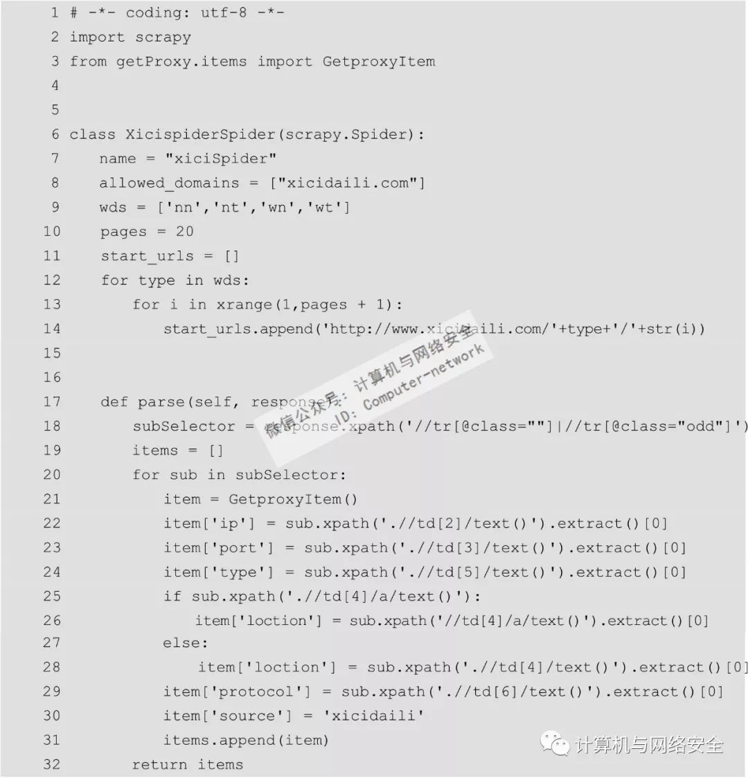 现在xiciSpider.py怎么编写已经一目了然了。xiciSpider.py的内容如下:
