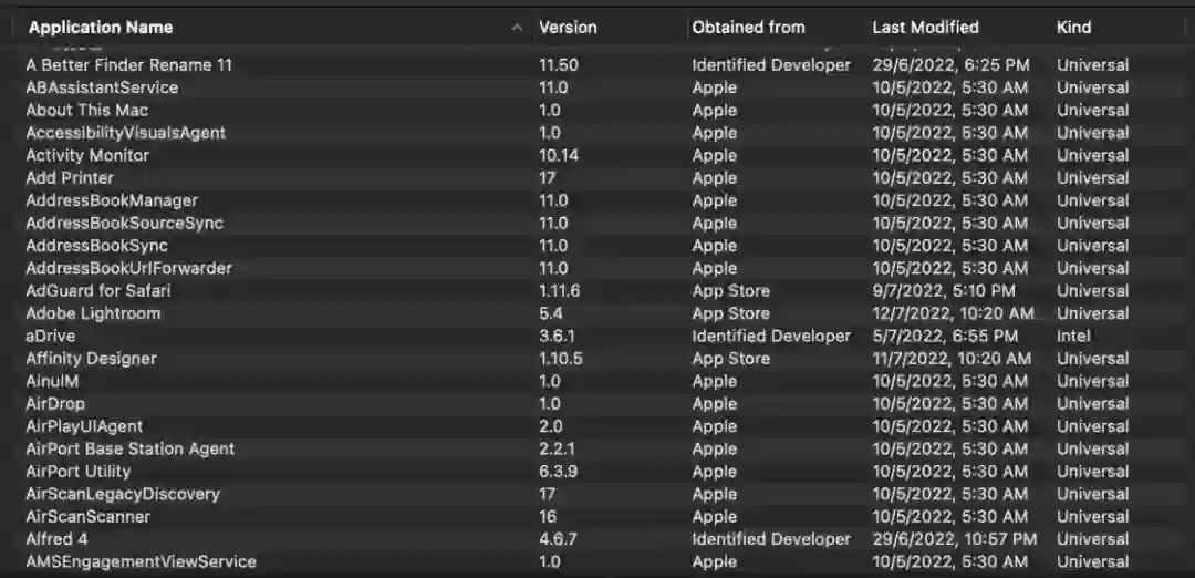 无论系统组件还是第三方 app,非 Universal 或者 Apple silicon 的反而比较少见,图中这个扎眼的「aDrive」是《阿里云盘》