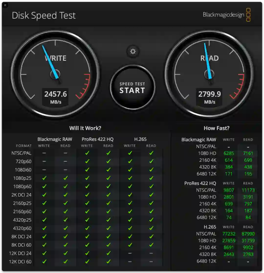 在 M2 版 MacBook Air 开售之前,其老大哥 MacBook Pro 先行出货。随后,不少媒体人就反馈了 M2 版 MacBook Pro 的 SSD 比前代速度大降的问题。正因如此,我在拿到新的 MacBook Air 之后没干别的,直接就装上 Blackmagic Disk Speed Test 来了一波测试。