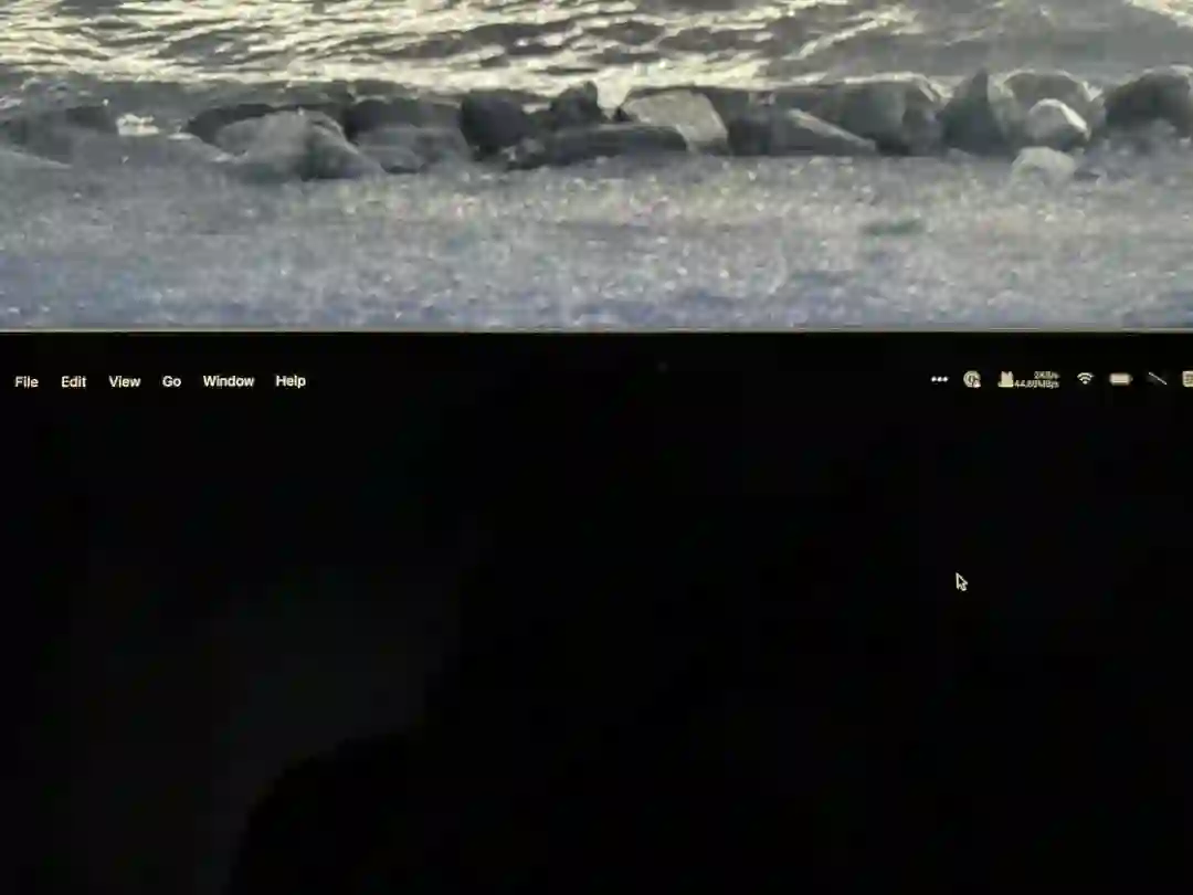但 MacBook Air 的「刘海」和 Pro 还有所不同,因为 Pro 系列使用了 mini-LED 屏幕,理论上可以比 Air 上的传统 LED 显示更高对比度,黑色的呈现也会更加深邃,可以通过使用深色背景的方式「隐藏」刘海。为了看看 Pro 上这招在 Air 上适不适用,我将新电脑的桌面壁纸设为纯黑,测试了 MacBook Air「隐藏」刘海的效果。