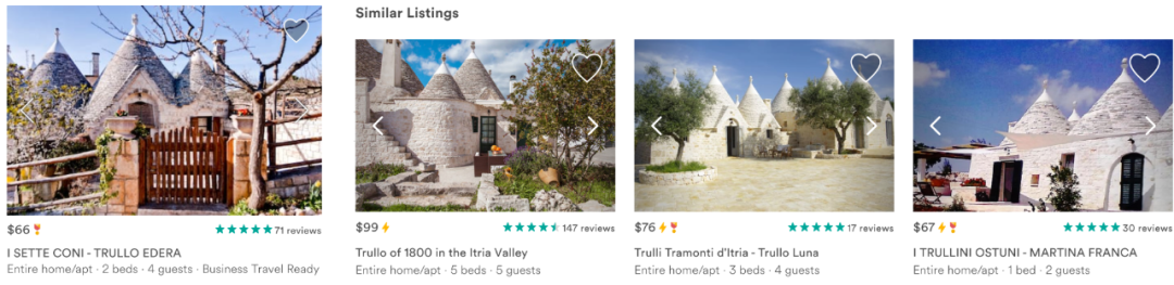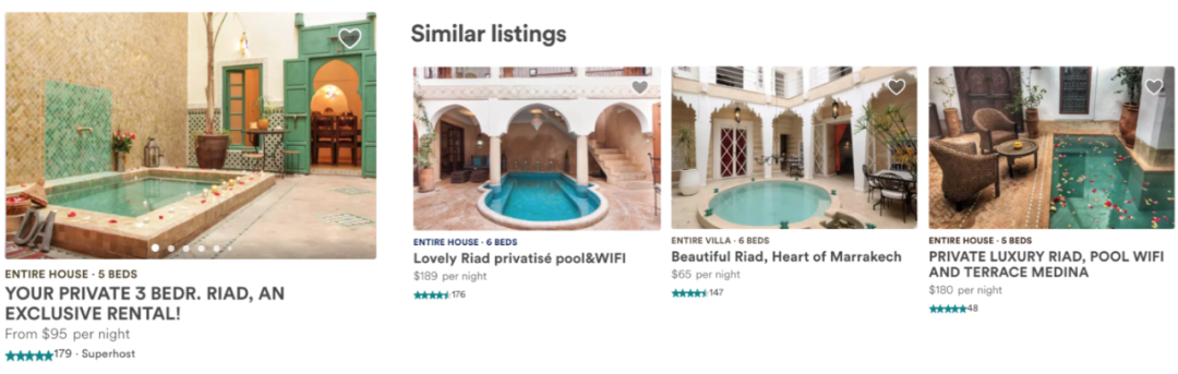 Airbnb的每个房屋页面都包含相似房屋推荐,会推荐与之相似的房屋,并在相同的日期提供这些房屋。