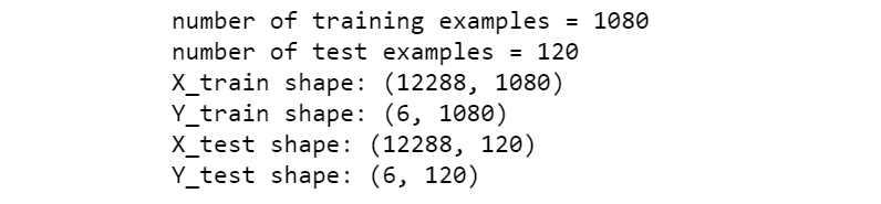 Y_train = convert_to_one_hot(Y_train_orig, 6) Y_test = convert_to_one_hot(Y_test_orig, 6)