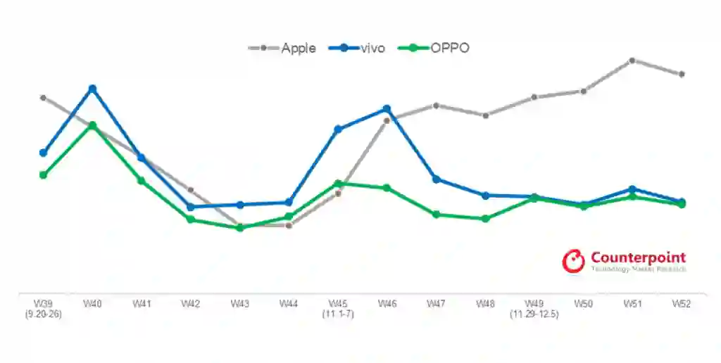 该机构在报告中称,由于 iPhone 13 采用了新的相机模组,并且在 Pro 版上增加了缺席已久的高刷屏,这些新的变化也让这代 iPhone 更加受到消费者关注。除了新改变以及相比以往更低的起售价外,国内高端市场缺乏相应的竞争对手也使得苹果成为了为数不多的选择。