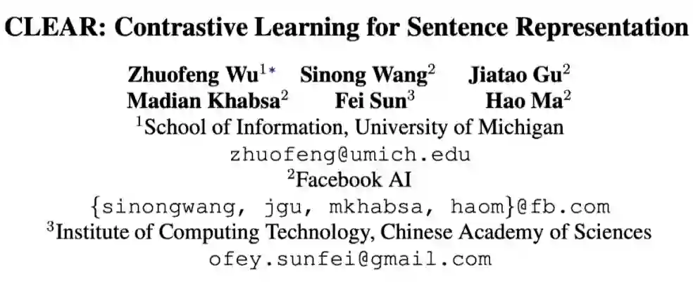 CLEAR: Contrastive Learning for Sentence Representation