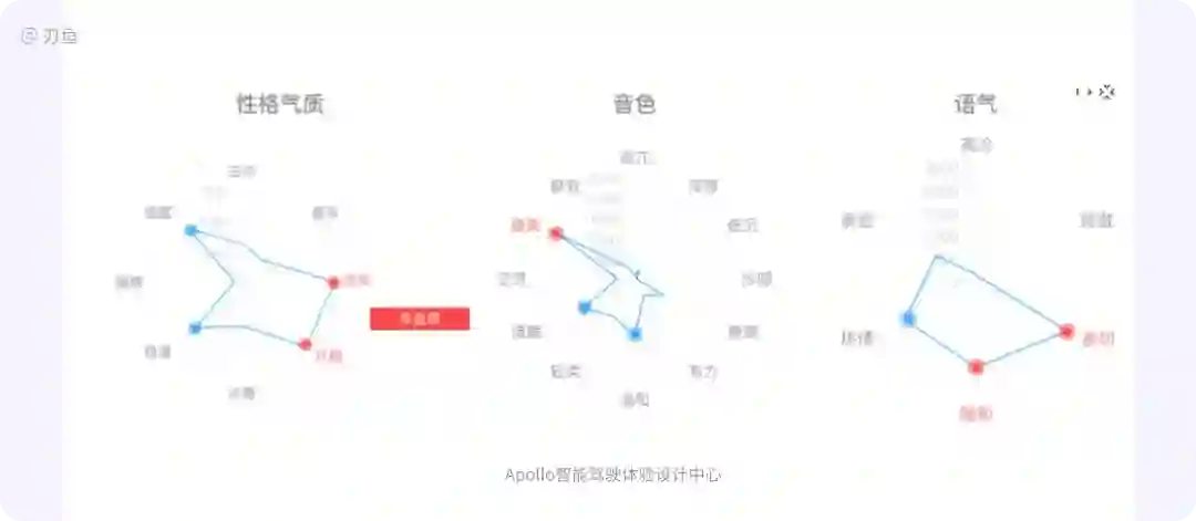 第一份是来自于百度智能驾驶团队投放在百度地图活动专区的的调研结果,来自于3745份有效样本,该团队将听觉形象细分为基础属性、性格特质和声音特质三个维度,根据三个维度的调研喜爱结果,组成了四种具体语音形象,分别是:甜美女生、温和御姐、活泼女孩和爽朗男性。