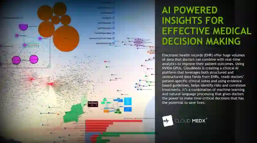 第二个应用是CLOUD MEDX做的,他们做的内容跟之前几家公司不一样。前面几家公司是基于已有的医疗记录,生成预测模型,去预测病人患病的可能性。CLOUD MEDX则是拿到了一些电子健康记录,比如病史、药物测试报告等数据,里面有两部分数据,一部分是来自医生记录的,跟国内一样,大家都知道我们看自己的病例是看不懂的,当拿到这些非结构化数据之后,做数据结构化的分析,然后直接结合NLP自然语言处理技术;另一部分是实验室的数据,或者生命统计的数据,通过这两部分的数据,开发了一个新的AI平台。