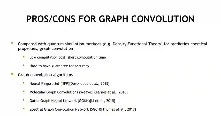 跟传统方法相比,图卷积有更低的计算开销和更少的计算时间,但是也有一个难点,就是很难保证准确性。常见的图卷积算法包括NFP、Weave、GGNN以及SGCN。这些方法都已经应用到了医疗领域,并进行了一些基本的研究。
