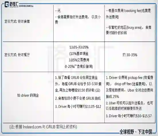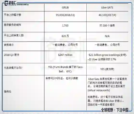 由于Uber EATS来势汹汹,成为GRUB的劲敌,所以下面将GRUB与UberEATS其他方面做比较: