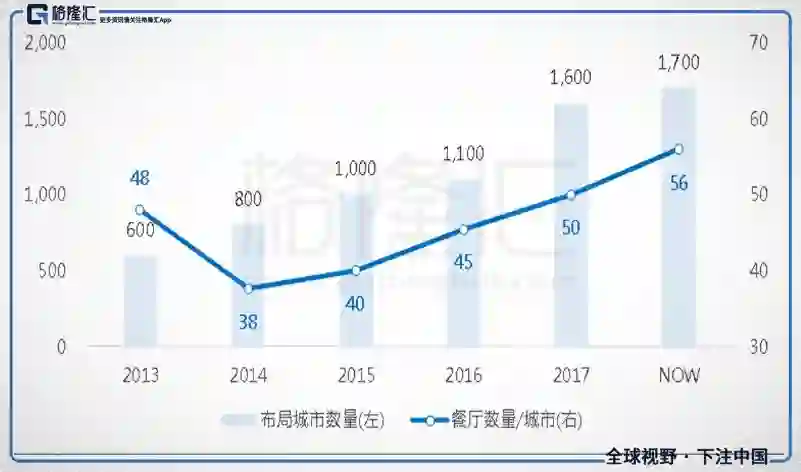 图五、GRUB近年扩点积极;布局城市数量(左轴),座(城市);单位城市餐厅数量(右轴),间(餐厅)