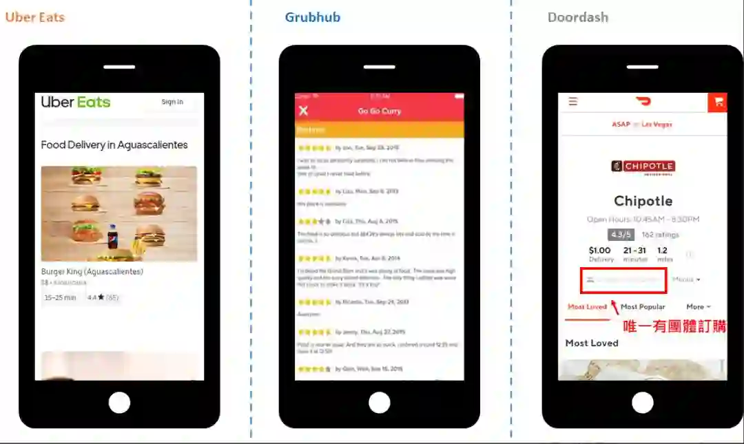 图十七、GRUB与UberEATS比较;