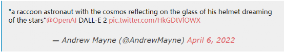 即使OpenAI网站的例子是精心挑选的,它们也令人印象深刻。Twitter上分享的例子显示,DALL-E 2似乎已经找到了一种方法来表示和再现图像中出现的元素之间的关系