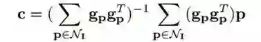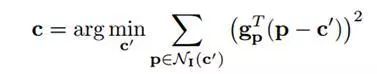 假设c是理想的角点位置,p是c的局部邻域的一个像素点,gp是p点的图像梯度向量,那么就有: