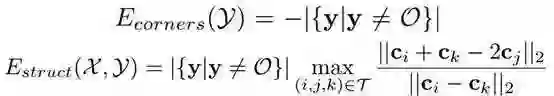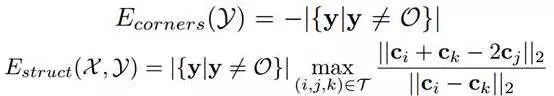 其中第一项E_corners是当前棋盘中角点总数的负值。 第二项E_structure描述了用两个相邻角点来预测第3个角点的匹配程度,分别对棋盘的每行和每列相邻的3个角点(triples)计算其结构能量,取其中的最大值作为该棋盘的结构能量。