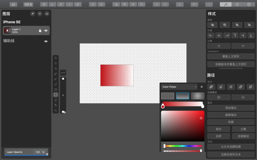 和旗下的 iOS /iPad OS 版类似,Vectornator for Mac 在界面上并没有太多的变化,同样注重的是初级使用者如何入门,左侧是图层,工作则放在左中位置,而属性或者功能调整则放在了右侧,这样的设计对于习惯于 Sketch 的用户而言非常容易理解使用,即便是初级用户也可以很快使用。