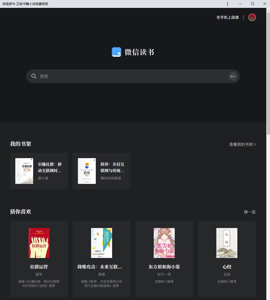 近日, 微信读书 推出了网页版本,用户可通过微信扫码登录网页版微信读书并同步内容。