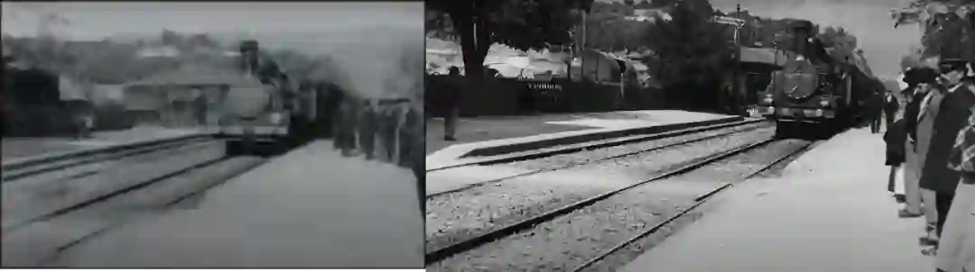 电影界最著名的短片之一是 1896 年的一部无声电影《L’Arrivée d’un train en gare de La Ciotat》,画面很简单,只有 50 秒,描述的是一列火车驶入车站的场景。Denis 正式对这个经典的短片进行了 AI 修复,效果非常不错。下图可以看出修复前后画面的强烈对比: