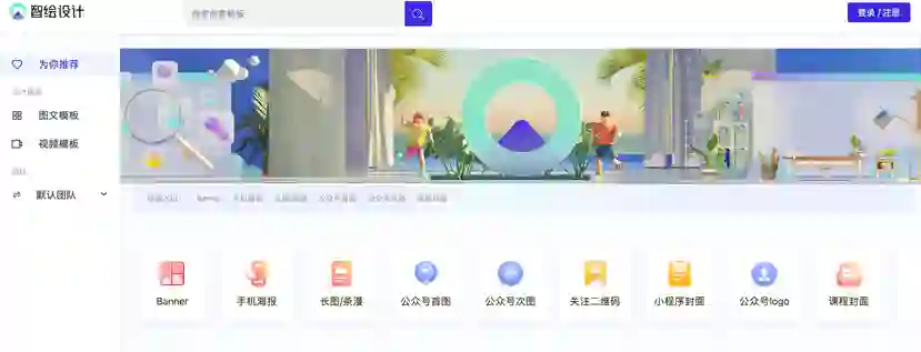 腾讯设计云的腾讯云智绘就是面向这种需求而生,它为用户提供一站式的素材智能化设计平台,平台拥有海量素材,用户可以根据需求,在平台上挑选适合的模版,替换文案后一键生成,就能轻松创作出想要的设计,节省搜集素材和处理图片的时间,还能规避侵犯版权的风险。