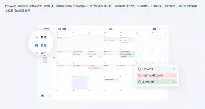 团队成员可以在ProWork上通过任务清单进行日程管理,可以配置优先级、日程颜色、花费时间、关联项目。产品经理、设计师、技术研发等不同角色,都能在同一个平台上看见彼此的工作进展,信息实时流动,减少不必要的协同,做好项目的整体资源统筹。