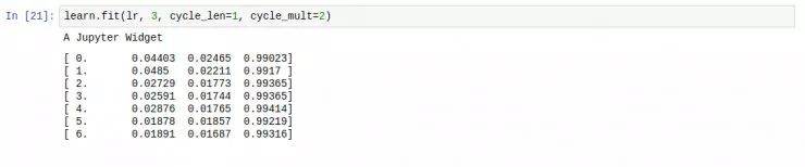# train last layer with data augmentation (i.e. precompute=False) for 2-3 epochs with cycle_len=1
