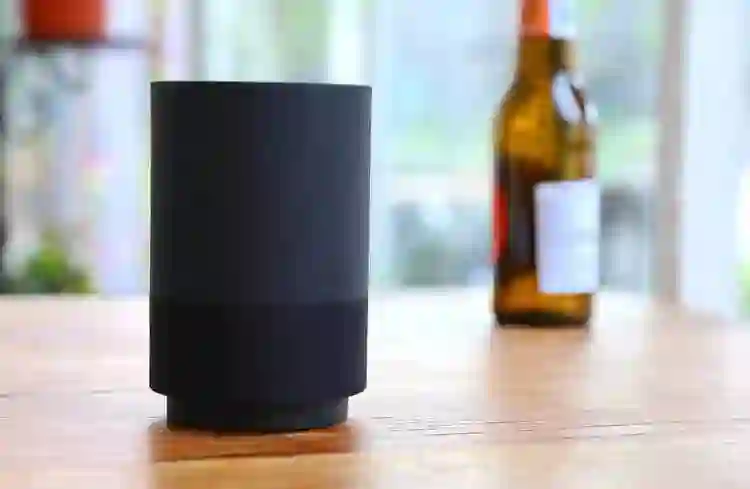 天猫精灵 X1 采用了圆柱形的设计,它的体积非常小巧,比我们之前评测过的 Google Home 还要小上一圈。它的外壳采部分采用了「二段式」的设计,上半部分是涂有亲肤材质的塑料,下半部分则包裹着纹路细腻的网布。天猫精灵 X1 整体的设计规整、简单,好处是放在家里的任何位置都不显得很突兀。