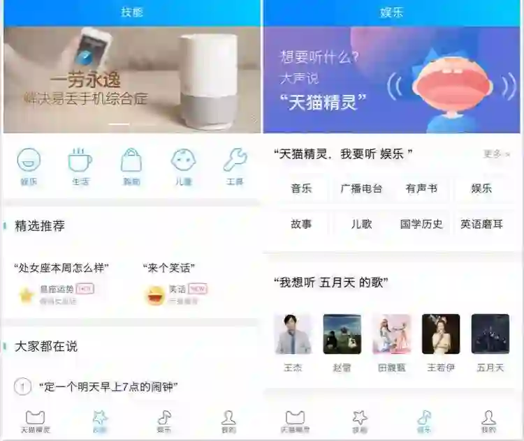 在语音交互层面,天猫精灵 X1 能够实现的功能大致上可以分成三类:查询类、娱乐类、购物类和工具类。在基本的查询方面,天猫精灵能够实现的功能和主流产品基本相同(天气、百科等),这里就不再赘述了,下面主要说说后面几种体验。