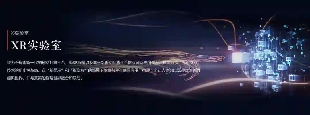 阿里巴巴达摩院 XR 实验室,致力于探索新一代移动计算平台,包括 VR/AR 眼镜以及基于 VR/AR 眼镜的新一代移动互联网应用技术,推动显示、人机交互技术的历史性革命。实验室主要有 VR/AR 眼镜、开发者平台及上层应用软件,坚持集硬件、系统、软件和内容为一体的完整生态化战略。