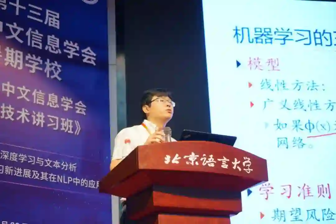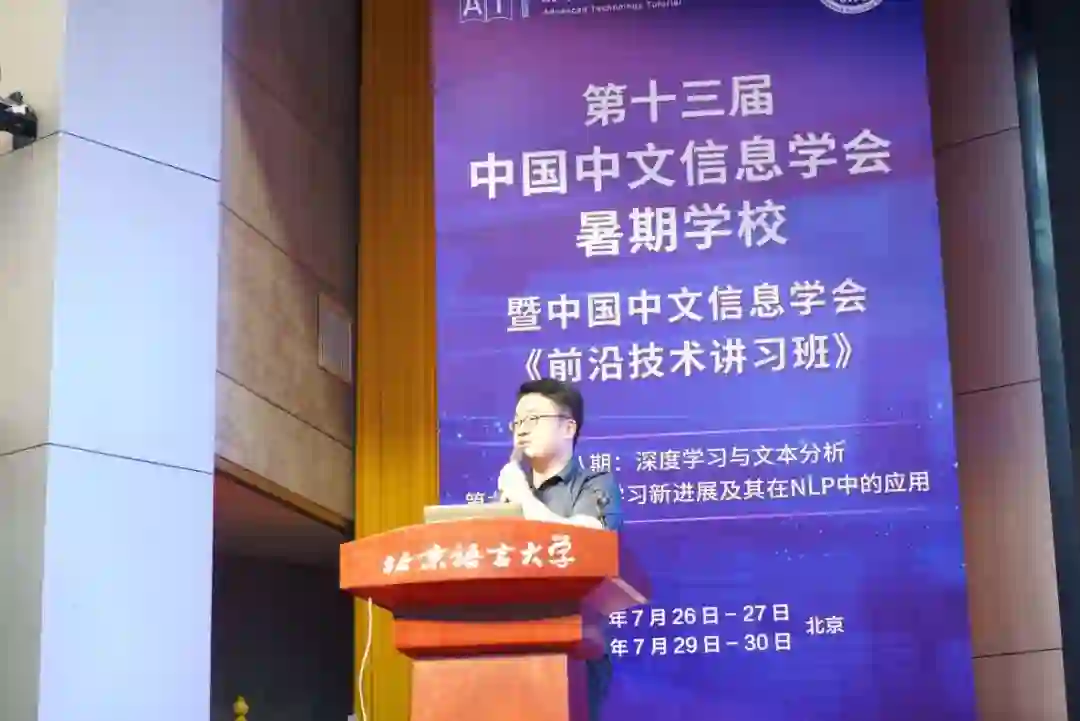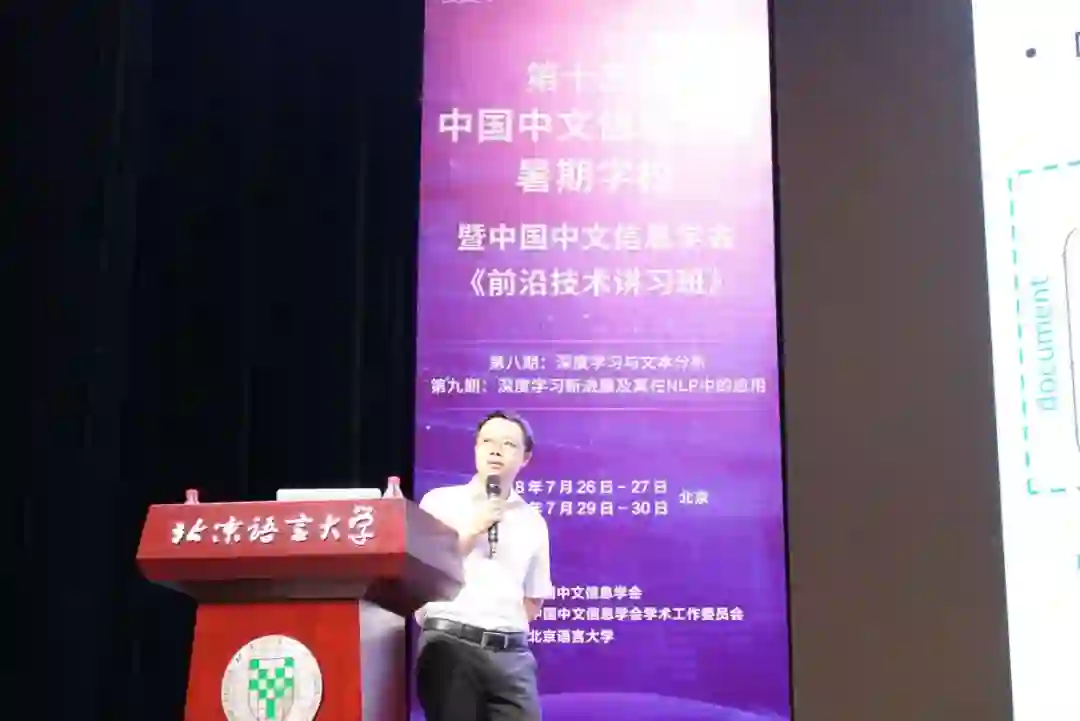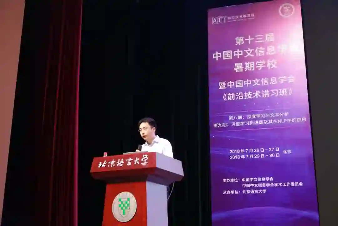 第十三届中国中文信息学会暑期学校暨中国中文信息学会《前沿技术讲习班》第八期和第九期(CIPSATT 8&9)在北京语言大学召开。论坛由中国中文信息学会和中国中文信息学会学术工作委员会主办,北京语言大学承办。本次讲习班主题分别为:深度学习与文本分析;深度学习新进展及其在自然语言处理中的应用。讲习班吸引了来自全国各高校及科研院所的专家、学者、学生、产业界研发人员等近400人。我中心车万翔教授在论坛上作了题为《深度学习与词法、句法、语义分析》的报告。