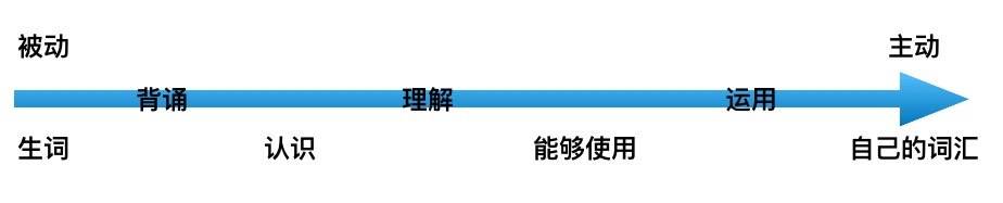 不断重复之后,虽然能够记住单词,但是随着语言学习的深入,又一个问题出现了:看得懂但是不会用、不会说。原因就在于,不断重复之后,认识的词汇终究只是被动的认识,而并没有内化为自己主动的记忆。