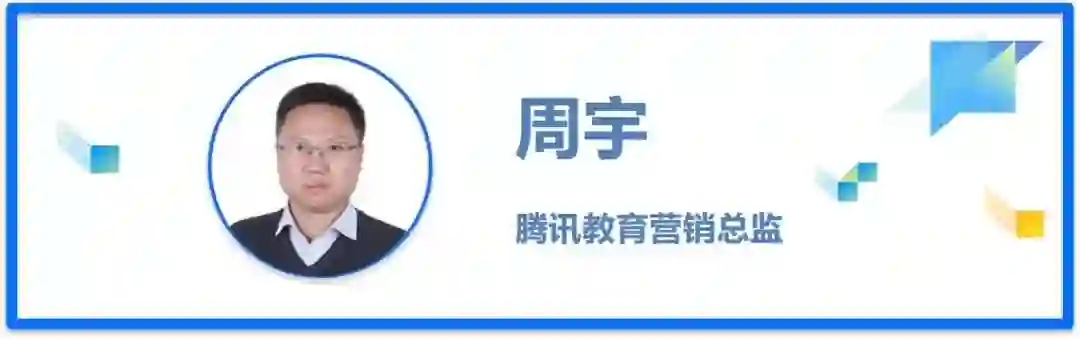 周宇,腾讯教育营销总监,教育行业营销产品负责人,专注于企业数字化新营销产品方案,曾服务并助力三十余家教育培训企业完成数字营销升级。