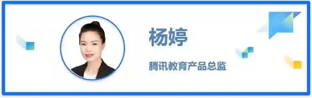 杨婷,腾讯教育产品总监,在线教育产品负责人。专注于在线教育企业数字化转型升级产品与方案打磨,对智慧教学及 AI 技术在教育核心场景应用及主流解决方案有着深刻的理解,