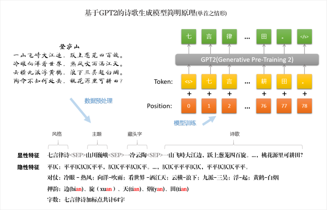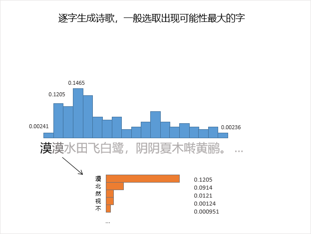 通过大量诗歌语料,诗歌生成模型能学习到任一诗句中相邻的字词之间的依赖关系