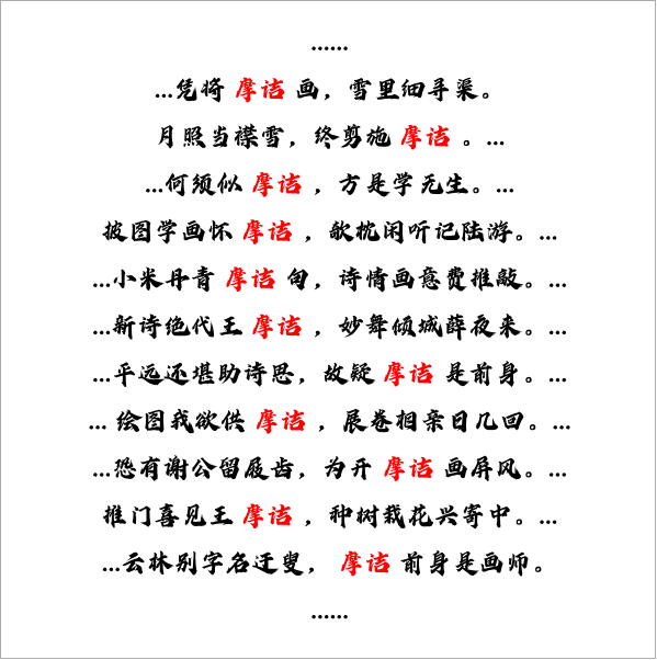 如果这个片段左右的搭配变化较多、很丰富,同时片段内部的成分搭配很固定,那么,我们可以认为这个片段是一个词汇,比如下图中所示的“摩诘”就是符合这个定义,那么它就是一个词汇。