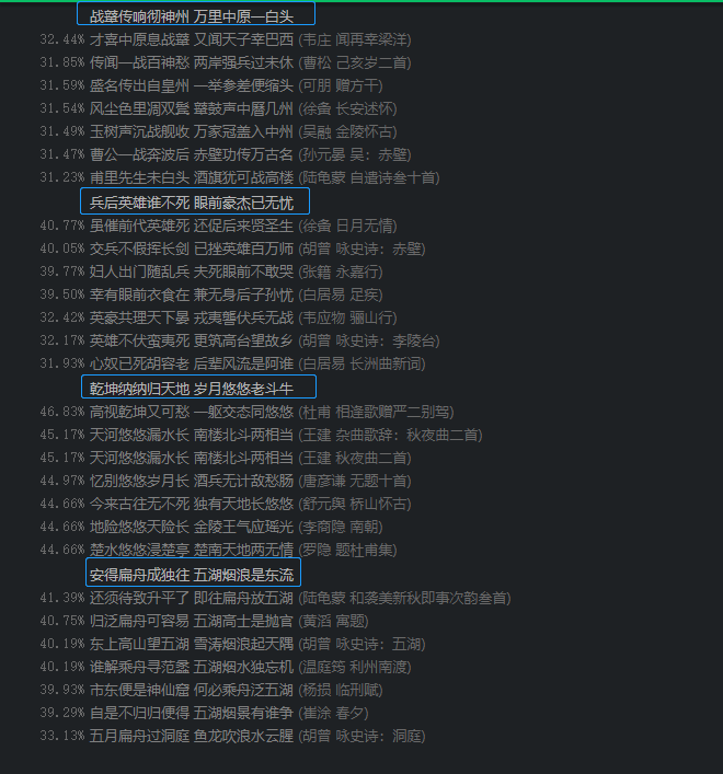 有了前面的词嵌入模型和语义相关度做“铺垫”,后续的热门诗歌题材发现就水到渠成了~