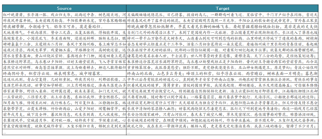 笔者编写爬虫采集了某诗歌分享网站上的若干诗歌及其翻译数据,经清洗后,得到3万条训练语句。