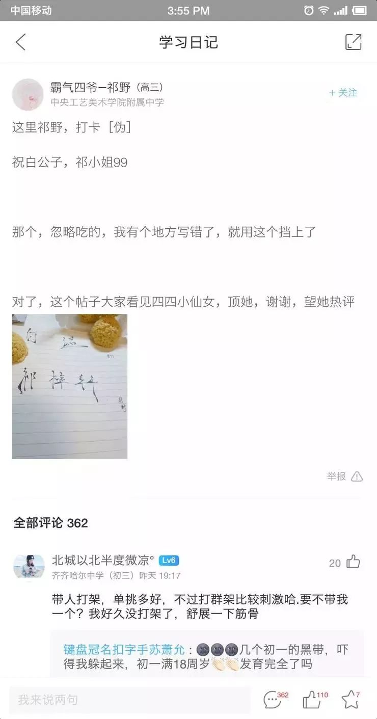 雷锋网也下载了多款学习类App,在某作业App的“学习圈”中依然发现了关于“打架”等字眼的内容。