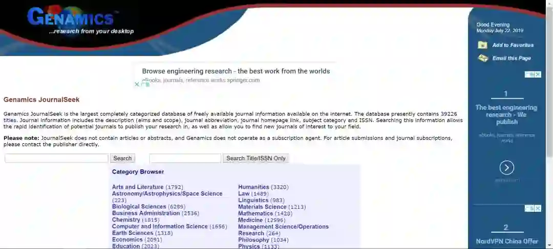 1sci-hub 网址: http://www.sci-hub.io/ 备用站点: http://www.sci-hub.cc/ 中国版以及备用站点: http://www.sci-hub.cn/、http://www.sci-hub.xyz/ 全能文献资源下载工具是一个俄罗斯牛人开发的可以下载任意文献杂志的工具,只要输入你想要下载的文献题目、DOI等信息就可以获取到该文献的真实地址并在线浏览,当然更重要的是可以下载。 2 BASE 网址: http://www.base-search.net/ BASE是德国比勒费尔德(Bielefeld)大学图书馆开发的一个多学科的学术搜索引擎,提供对全球异构学术资源的集成检索服务。 它整合了德国比勒费尔德大学图书馆的图书馆目录和大约160个开放资源(超过200万个文档)的数据。 3 谷歌学术 网址: http://scholar.glgoo.org/https://xs.glgoo.net/ 目前,大陆对谷歌相关网站是屏蔽的,但可以采用一些代理或者镜像网站登陆谷歌学术,我们暂时提供2个比较稳定的谷歌学术。 也有镜像网站合集: http://www.dirmor.com/,选择一个进去就可以。 免费搜索学术文章的Google网络应用。2004年11月,Google第一次发布了Google学术搜索的试用版。该项索引包括了世界上绝大部分出版的学术期刊, 可广泛搜索学术文献的简便方法。 可以从一个位置搜索众多学科和资料来源:来自学术著作出版商、专业性社团、预印本、各大学及其他学术组织的经同行评论的文章、论文、图书、摘要和文章。 4 Library Genesis 网址:1.http://gen.lib.rus.ec/ 2.http://libgen.io/ 3.http://libgen.org/ 4.http://libgen.io/scimag/ Library Genesis号称是帮助全人类知识无版权传播的计划。网站上论文很多,下载方便,还有很多外文书籍和中文书籍,几乎每天都在更新。这也是一个神奇网站,基本上所有的外文书籍和论文都可以搜到并下载,最近的学术论文也可以下载。 Library Genesis和Sci-Hub可谓患难兄弟,之前都因为爱思唯尔惹上纠纷,而且从Library Genesis下载不了的还可以从网页直接链接到Sci-Hub下载。 5 百度学术 网址:http://xueshu.baidu.com/涵盖了各类学术期刊,会议论文,旨在为国内外学者提供最好的科研体验。百度学术搜素可以检索到收费和免费的学术论文,并通过时间筛选,标题,关键字,摘要,作者,出版物,文献类型被引用的次数等细化指标提高检索的精准性。 通过百度学术,都能搜到知网,万方,维普等学术网站的论文,台湾文献的论文也可以收集,其中的一项论文求救功能,相当实用。 不过,百度学术只是一个学术信息搜索引擎,如果下载还得到知网等数据库。 6 Cnpiec LINK service 网址: http://cnplinker.cnpeak.com/ 一个方便快捷的查阅国外各类期刊文献的综合网络平台,cnpLINKer即“中国链接服务”,目前主要提供约3600种外国期刊的目次和文摘的查询检索,电子全文链接及期刊国内馆藏分布查询功能。并时时与国外出版社保持数据内容的一致性和最新性。 7 PMC(PubMed Cenral) 网址:http://www.ncbi.nlm.nih.gov/pmc/PubMed Central (PMC) 是美国国立卫生研究院提供的一项服务,存档生物医学,生命科学科研文献,PMC获得NLM(National Library of Medicine)的授权,收录存档生物/医学文献,免费是PMC的核心原则,随着技术的进步,目前文献的数字存储格式可能会淘汰,但PMC永久保存了这些内容.NLM认为数字资料不是用来存储的,持续的应用才是物尽其用,因此免费是PMC的一个核心原则.但是免费并不代表没有版权,资料虽然存储在PMC,作者和出版商才是版权的拥有者,所有使用PMC的用户必须遵守版权声明。 8 中国知网 网址:http://www.cnki.net/知网,是国家知识基础设施的概念,由世界银行于1998年提出。CNKI工程是以实现全社会知识资源传播共享与增值利用为目标的信息化建设项目。由清华大学、清华同方发起,始建于1999年6月。提供CNKI 源数据库、外文类、工业类、农业类、医药卫生类、经济类和教育类多种数据库。 其中综合性数据库为中国期刊全文数据库、中国博士学位论文数据库、中国优秀硕士学位论文全文数据库、中国重要报纸全文数据库和中国重要会议文论全文数据库。 每个数据库都提供初级检索、高级检索和专业检索三种检索功能。高级检索功能最常用。 9 DOAJ 网址: https://doaj.org/ DOAJ(Directory of Open Access Journal),由瑞典的隆德大学图书馆Lund University Libraries设立于2003年5月,DOAJ的优势在于收录的期刊有着严格的质量控制,包括很多SCI收录的期刊。 DOAJ收录的OA期刊数量非常多,属于目前最好的OA期刊目录网站。目前DOAJ除了查询OA期刊外,还可以查询部分期刊的文章内容。 10Book系列 Book系列网站书籍种类丰富,基本专业书籍都可找到免费下载。包括Bookie、Bookzz、Bookfi等,(Bookzz、Bookfi在Library Genesis的导航栏有,但是现在貌似打不开了)。 均可免费下载文献和书籍,文献下载适合前几年的,书籍就不用说了,超级多! 其中BookSC网站: (http://zh.booksc.org/)文献资料多。BookSC网站截止到今天,已有278多万书籍以及5242多万文献可以免费下载,大多数是pdf,djvu,eupb格式。 下载也很方便,直接搜论文或者文章题目即可,还可将选择地区并设置成中国。BookSC网站体验很好,搜索后直接点下载就可以了,超级方便! 11arXiv 网址: arXiv.org e-Print archive arXiv的亮点是网站上面的文章大多数都是会投稿到学术期刊的文章,投稿作者对文章多半都是保持严谨态度的,只有少部分是一直保持预印本的形式。目前arXiv文章类型主要分为七大类:物理、数学、非线性科学、计算机科学、定量生物学、定量金融学和统计。每个大类下面又分有若干子类,例如物理下