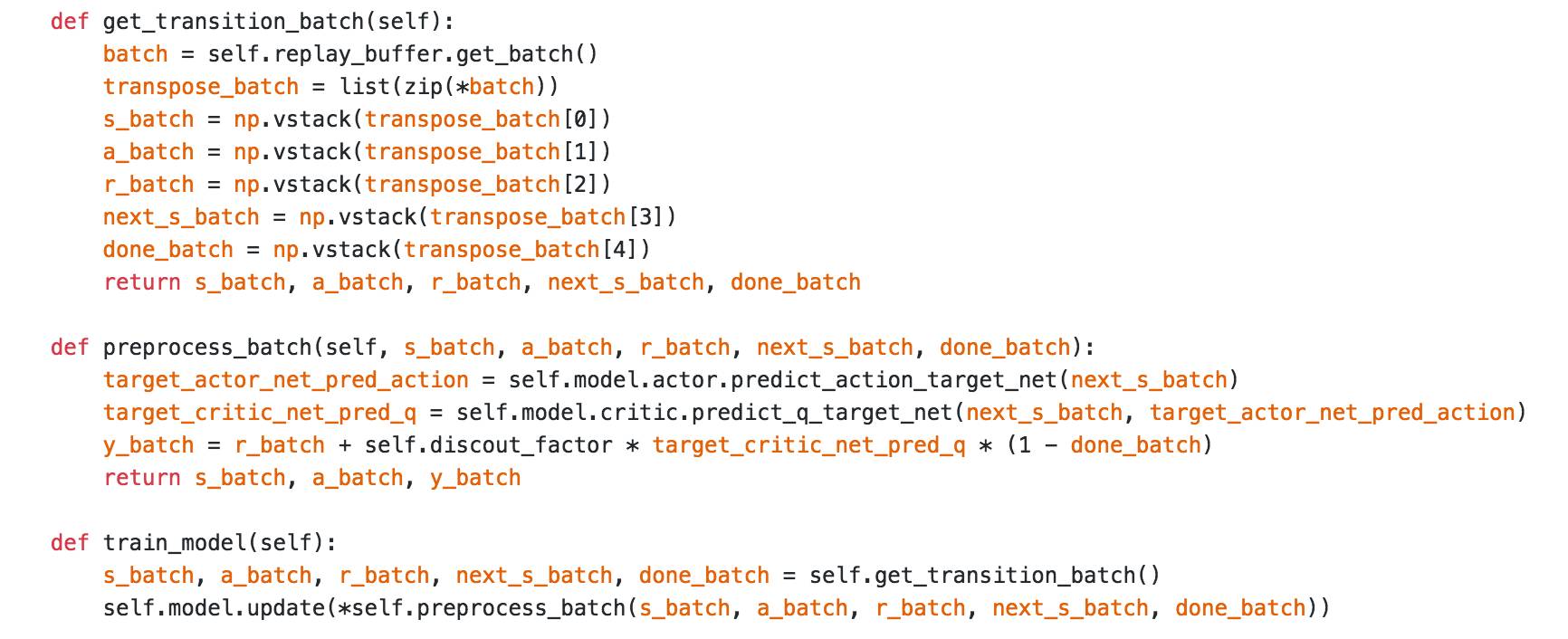 这里 critic 只是很简单的是一个 L2 loss。不过由于 transition 是 s, a, r, s'。要得到 y 需要一步处理,下面是预处理 transition 的代码。