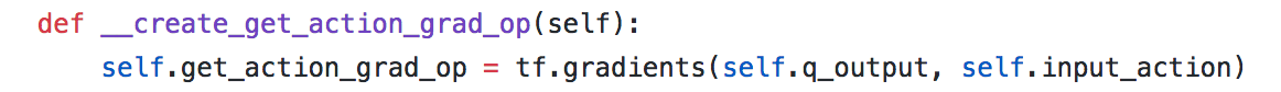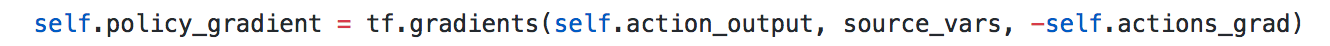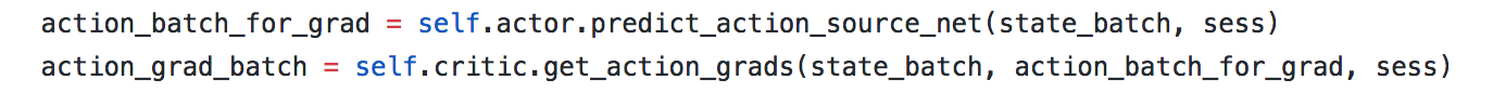 然后我们把得到的这部分梯度,和 actor network 的输出对 actor network 的权重求导的梯度,相乘就能得到最后的梯度,代码如下: