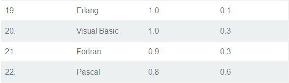 当然,从这张图中可能会推导出在2014年用户开始从Java切换到Markdown。我们希望避免去比较那些没有可比性的语言。这就是为什么我们将重点放在25个主要编程语言的样本上。实际上是22个,因为我们没有关于Lisp、Kotlin和Cobol这三门语言的数据。