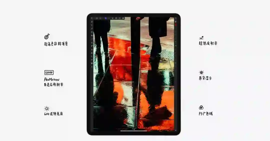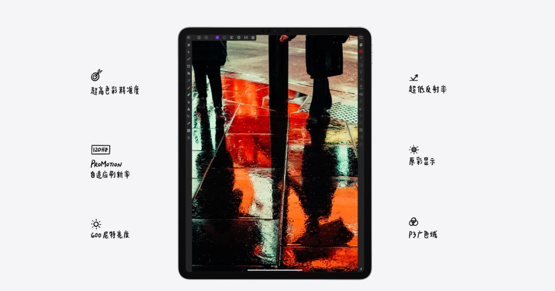 新款 iPad Pro 仍然采用 11 英寸和 12.9 英寸两个版本设计,采用 Liquid 视网膜全面屏,具备ProMotion 自适应刷新率、原彩显示和超高色彩精准度等先进技术。