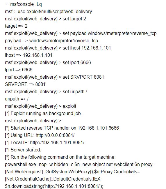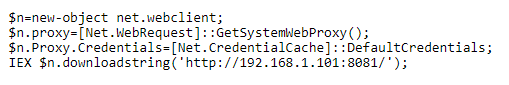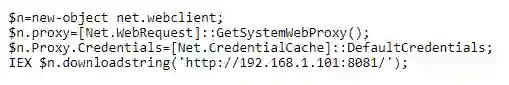 装有powershell的客户端执行以下命令则可获取meterpreter会话: